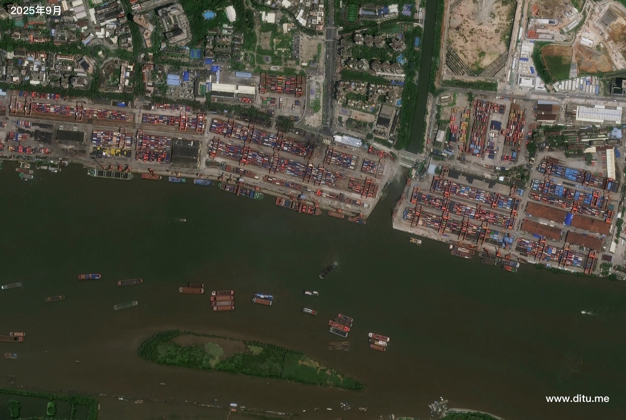 广州黄埔港最新卫星影像 时间: 2025-10-06 分类: 地图资料 卫星图像拍摄时间:2025年9月。位于广东省广州市黄埔区,地处珠江口内北岸。这里唐代称黄木湾,是天然良港,水深浪静,淡水足,晋代已为广州外港。