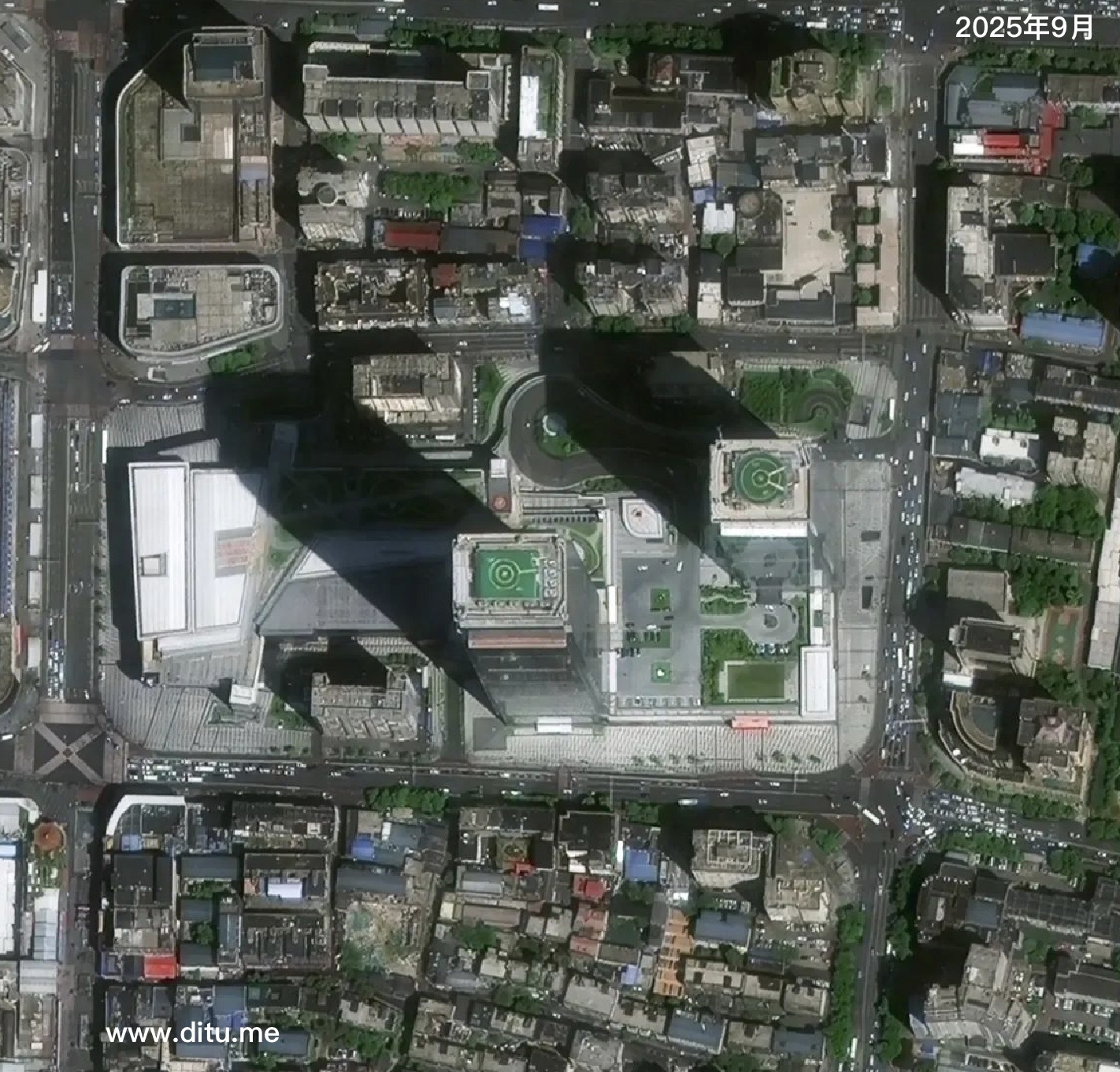 长沙IFS国际金融中心最新卫星影像 时间: 2025-10-26 分类: 地图资料 卫星图像拍摄时间:2025年9月。位于湖南省长沙市芙蓉区解放西路188号,地处五一商圈核心地段,是一座超高层大型城市综合体。