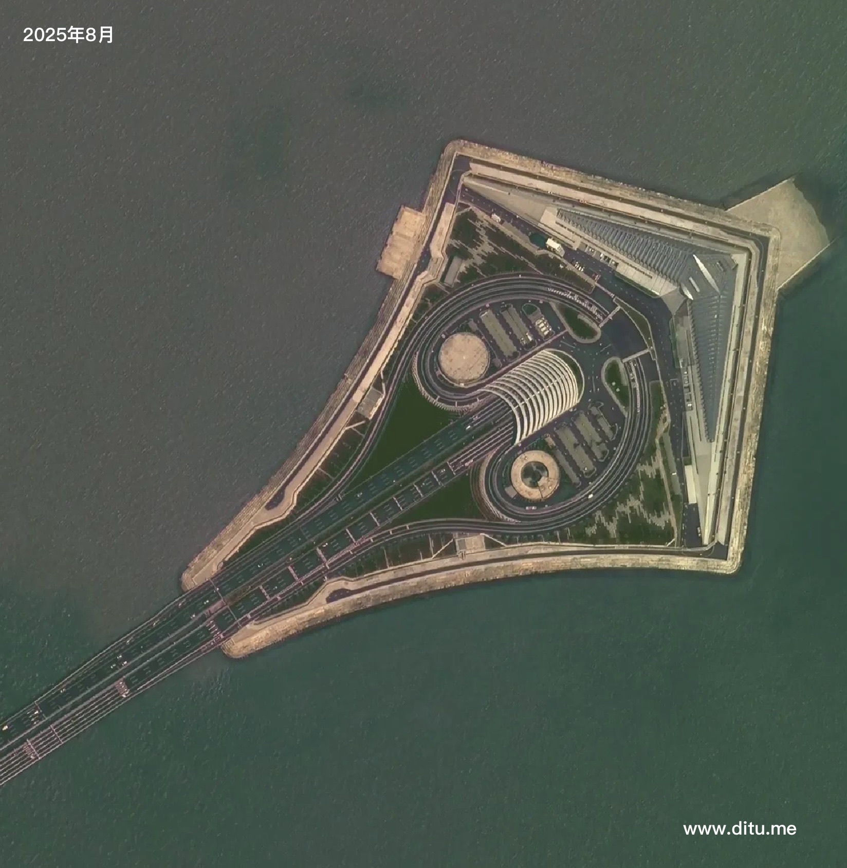 深中通道西人工岛最新卫星影像 时间: 2025-10-27 分类: 地图资料 卫星图像拍摄时间:2025年8月。深中通道西人工岛是连接深中大桥与海底隧道的桥隧转换枢纽,面积约13.7万平方米,其核心功能包括交通管理、应急救援及科普教育,现开放粤港澳大湾区跨海通道科普基地供游客参观。