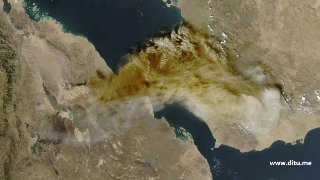 海利古比火山喷发后的卫星影像 时间: 2025-11-25 分类: 其他 已休眠万年的埃塞俄比亚海利古比火山在25年11月23日早上突然喷发。上图就是喷发后的最新卫星图像,我们可以看到,来自埃塞俄比亚的火山灰柱越过红海,途经阿曼和也门,已经抵达印度首都德里。