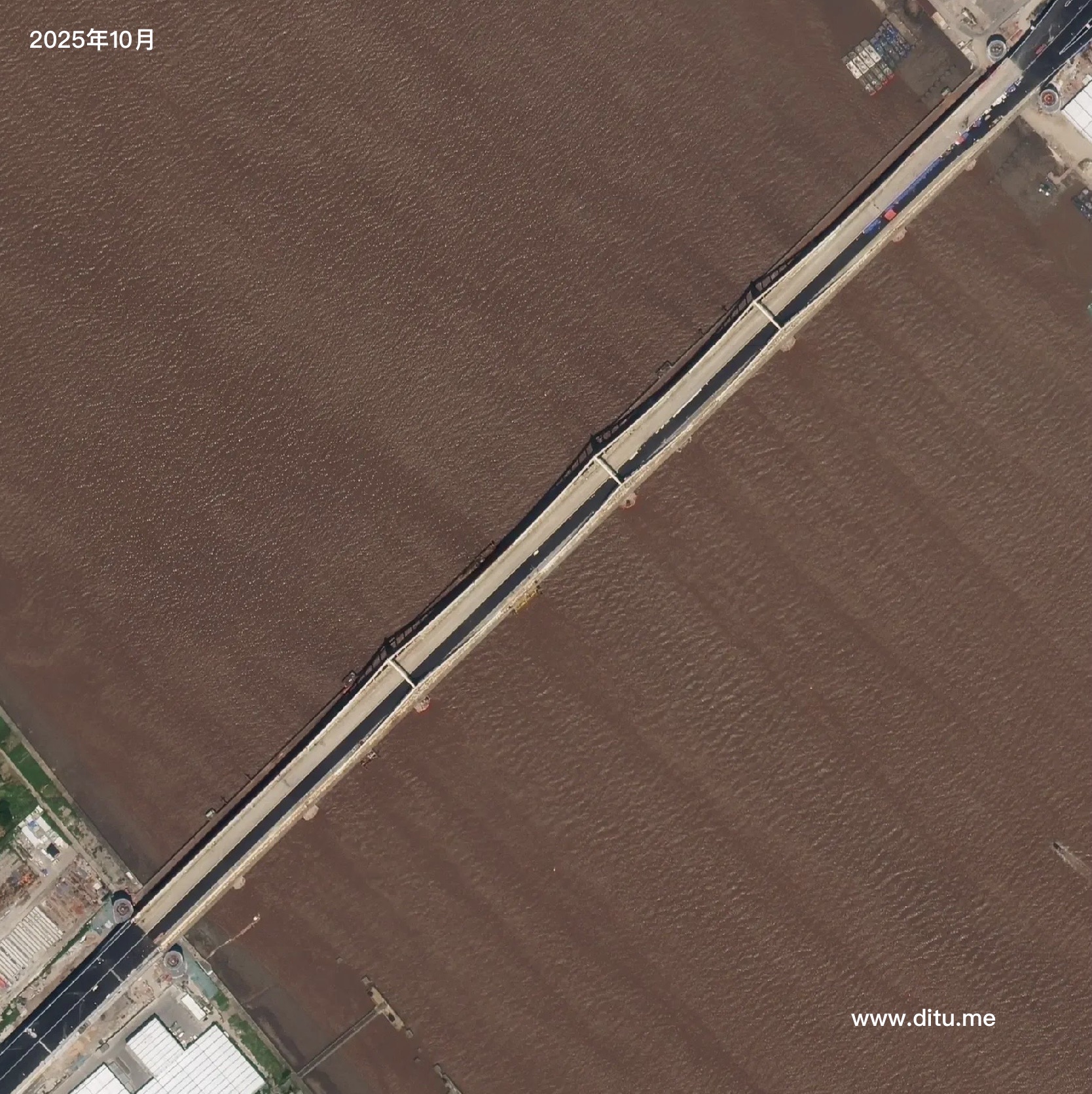 瑞安永宁大桥最新卫星影像 时间: 2025-12-19 分类: 地图资料 卫星图像拍摄时间:2025年10月。位于浙江省瑞安市,横跨飞云江, 是国内首座 “多跨长联公轨合建钢桁梁悬索桥” 。简单来说,就是一座同时承载公路、轨道交通和行人的综合性大桥。