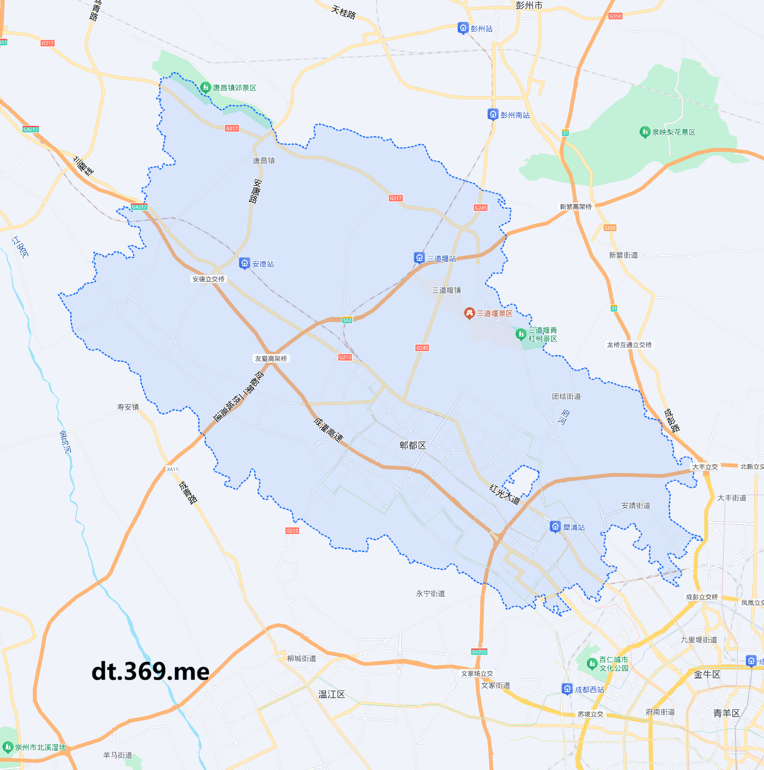 成都郫都区行政区划图 时间: 2026-02-04 分类: 地图资料 上图蓝色阴影部分就是郫都区在成都市的区位划分。郫都区地处成都市西北部,截至2024年,区内下辖9个街道、3个镇,常住人口140.29万。