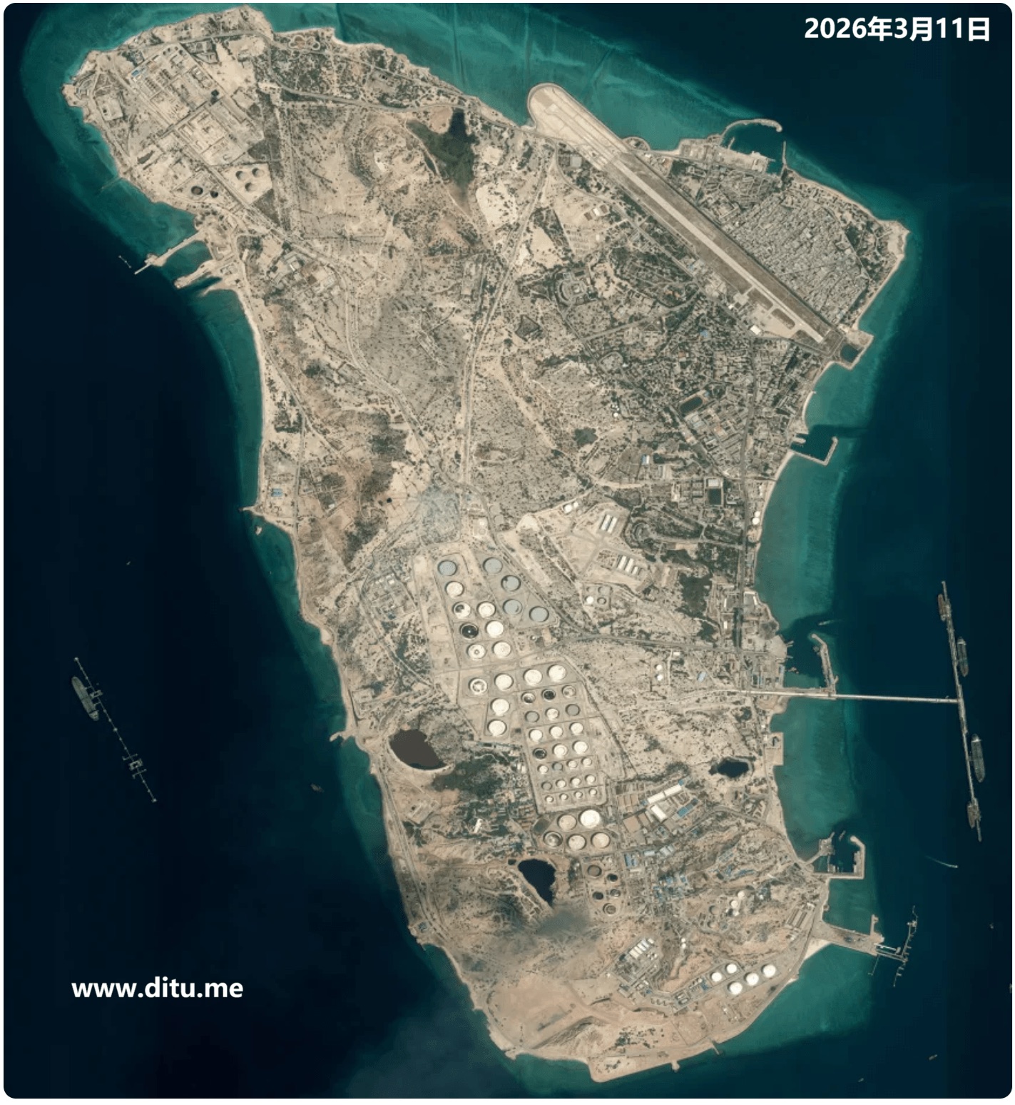 伊朗哈尔克岛最新卫星影像 时间: 2026-03-16 分类: 地图资料 卫星图像拍摄时间:2026年3月11日。Kharg Island,是伊朗波斯湾中的一座重要小岛,被誉为伊朗石油出口的“生命线”和“禁岛”(Forbidden Island)。它虽面积不大,却因战略地位而备受全球关注。历史影像: